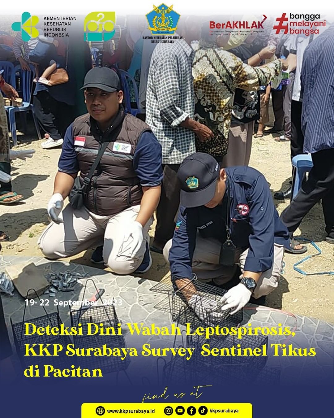 Kegiatan diisi dengan sosialisasi tentang penyakit leptospirosis dan tata cara pemasangan perangkap tikus. Survei ini mendapatkan dukungan dari Dinkes Kabupaten Pacitan dan Puskesmas setempat. Terlihat banyak Kader Puskesmas di wilayah tersebut yang turut membantu jalannya survei.