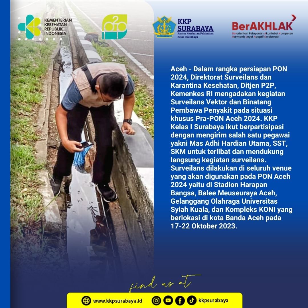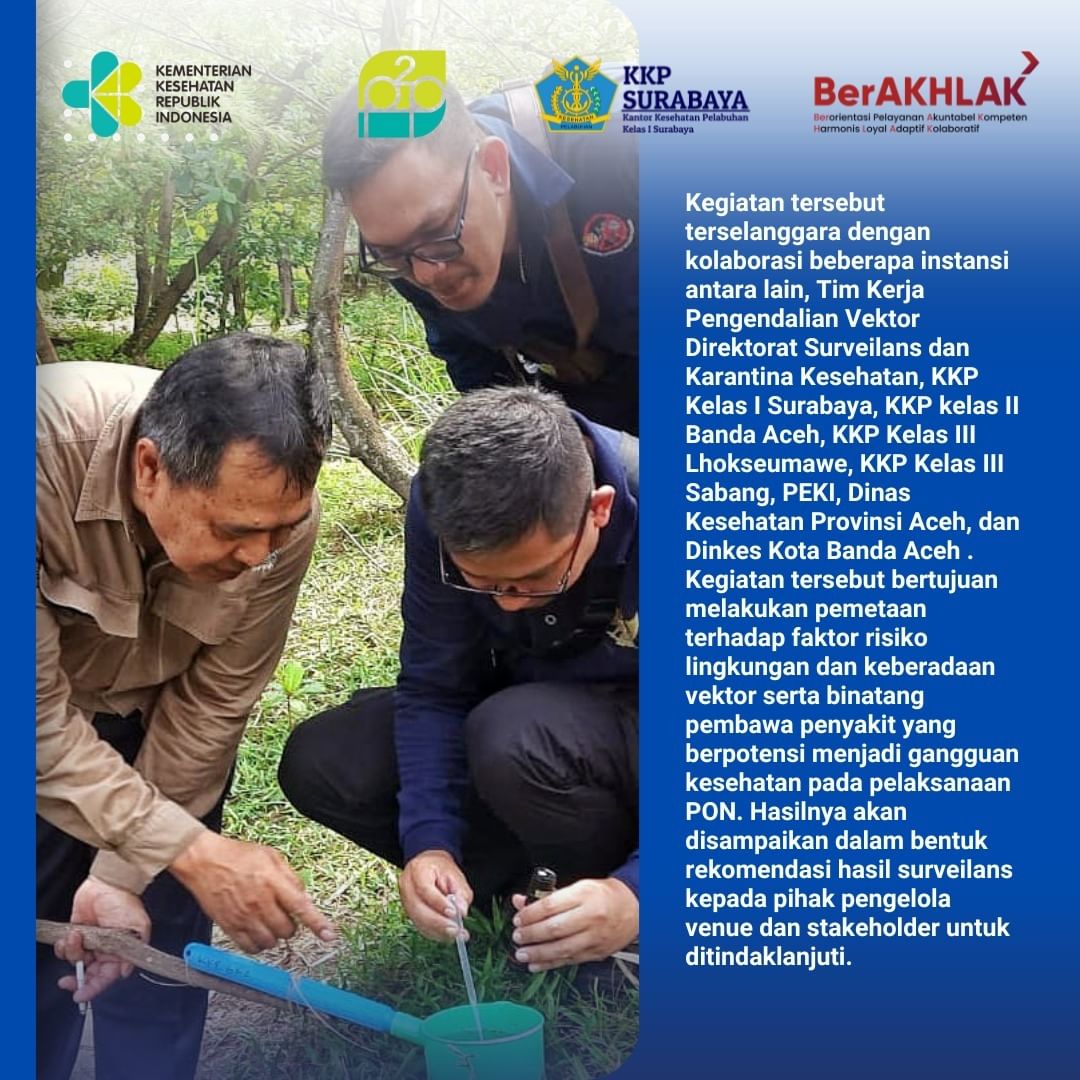 Pekan Olahraga Nasional (PON) Aceh 2024 sudah masuk tahap persiapan. Salah satunya adalah faktor risiko kesehatan lingkungan. Dalam rangka hal tersebut, Kementerian Kesehatan melakukan kegiatan Surveilans Vektor dan Binatang Pembawa Penyakit di Venue.
