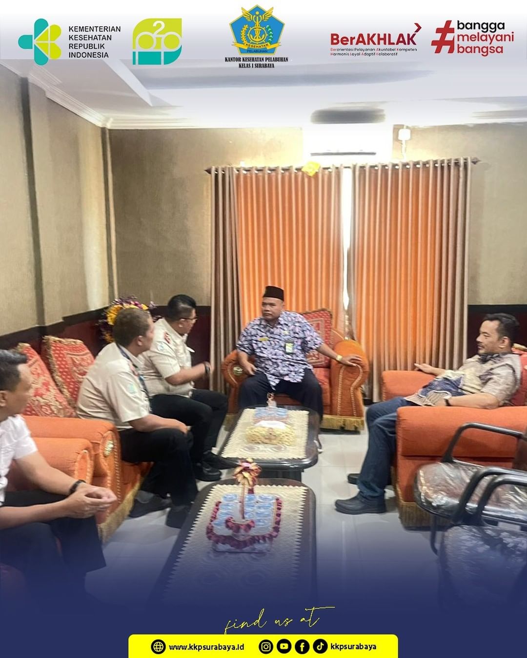 Surabaya – Hari ini, Kepala KKP Kelas I Surabaya Dr. Rosidi Roslan, SKM, SH, MPH, MH berkunjung ke UPT Asrama Haji Surabaya. Disana, Kepala KKP Kelas I Surabaya Dr. Rosidi Roslan, SKM, SH, MPH, MH bertemu dengan Kepala UPT Asrama Haji Surabaya Gartaman, S.Ag., Kunjungan ini dilakukan dalam rangka mempererat jalinan kerjasama pada kegiatan haji embarkasi Surabaya.