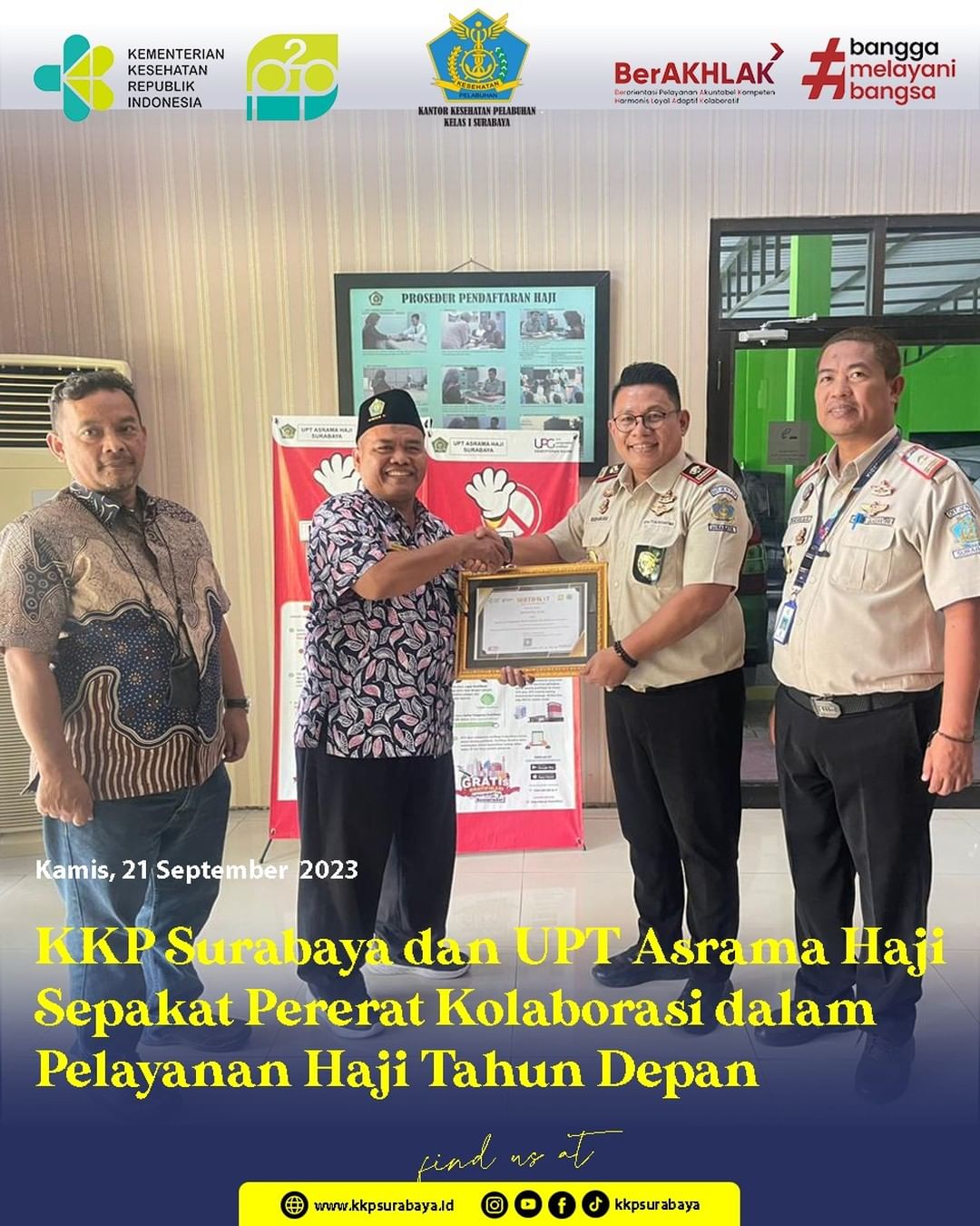 Kepala KKP Surabaya Dr. Rosidi mengapresiasi Kinerja UPT Asrama Haji atas keberhasilan penyelenggaraan Haji embarkasi Surabaya di tahun ini. Kedepannya, diharapkan kerja sama di bidang haji semakin ditingkatkan demi memberikan pelayanan yang lebih baik lagi kepada jamaah haji.