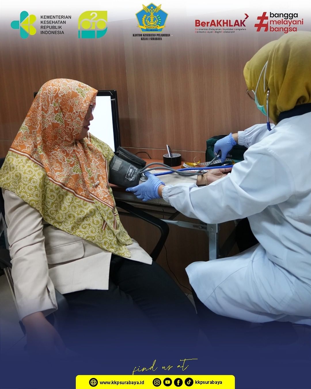 Sidoarjo – Kantor Kesehatan Pelabuhan Kelas I Surabaya mengadakan Medical Check Up (MCU) untuk seluruh pegawai pada tanggal 14 s.d. 15 September 2023. Pemeriksaan MCU dilakukan di Ruang Pemeriksaan Lantai 1 KKP Surabaya dengan menggandeng Klinik Ultra Medica.
